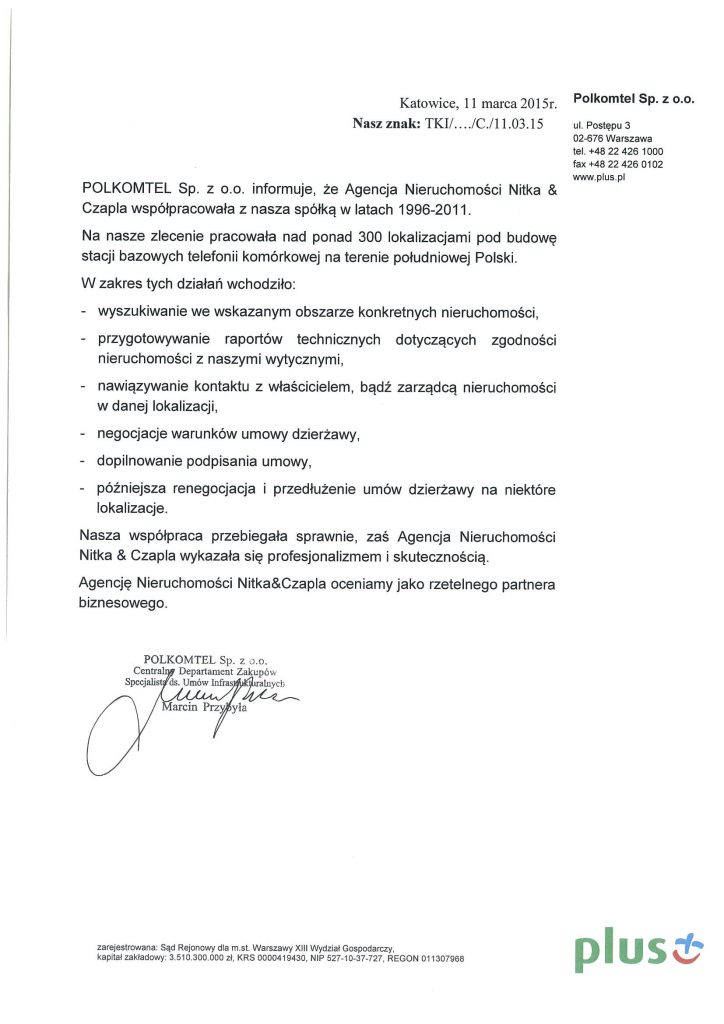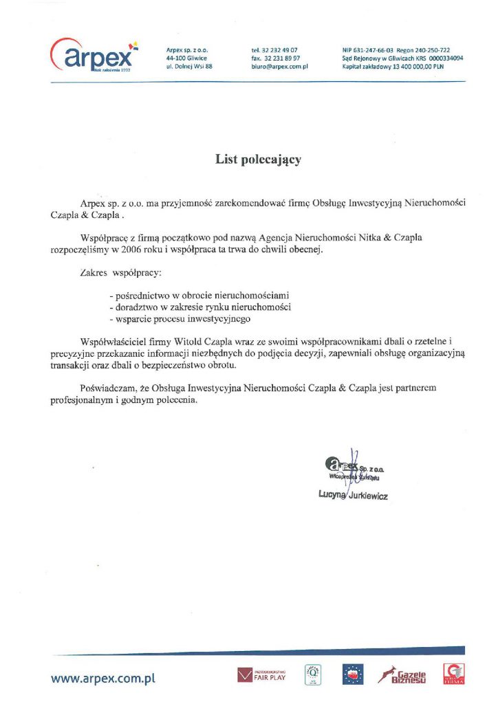 "Dziękuję bardzo agencji nieruchomości Czapla&Czapla za profesjonalną pomoc przy sprzedaży lokalu. Dzięki profesjonalizmowi pani Iwony Bytom sprawa potoczyła się szybko i bez żadnych problemów. Serdecznie polecam panią Iwonę. Dziękuję"